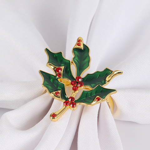 Navidad diamante rama Metal aleación Rhinestone oro hojas árbol Floral servilletero anillo titular hoja para boda Mesa restaurantes