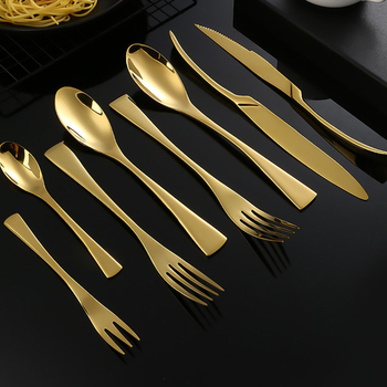 Juego de cubiertos de lujo Juego de cubiertos de oro para restaurantes de boda Juegos de cubiertos Tenedor Cuchillo y cuchara Vajilla de acero inoxidable