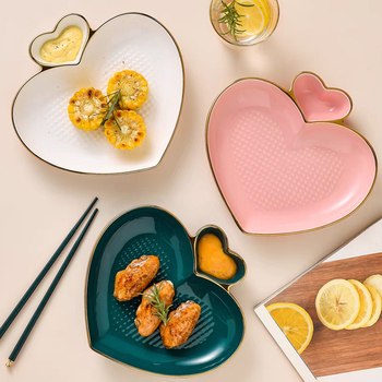 Nuevas Ideas de productos 2025, estilo nórdico de lujo, diseño en forma de corazón, vajilla, platos con borde dorado, vajilla, platos de porcelana