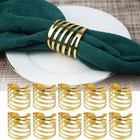 Servilletero de plata y oro de lujo al por mayor, servilleteros, anillos de mesa, redondo servilletero dorado para fiesta, boda
