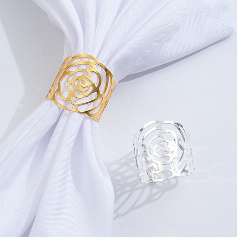 Adornos de Mesa para el Día de San Valentín, servilletero de rosa, hebilla de servilleta de flor hueca dorada para eventos de banquetes de boda