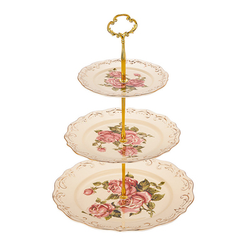Bruiloftsfeest Decoratie Luxe Europese Stijl Keramische Dessert Cupcake Cake Bord 3 Laag Cake Stand