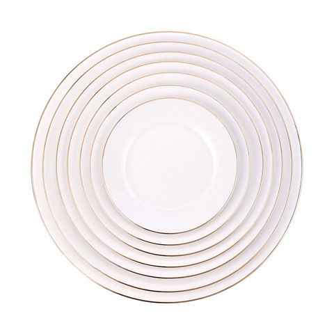 Пользовательский логотип 6 7 8 10 12 14 дюймов торт десертное блюдо и тарелка керамическая тарелка для ресторана золотой ободок белая свадебная тарелка