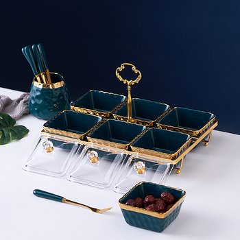 2/3/4/6 отсек, набор керамических закусок, фарфоровая тарелка для закусок, цветная глазурная сахарница с подносом