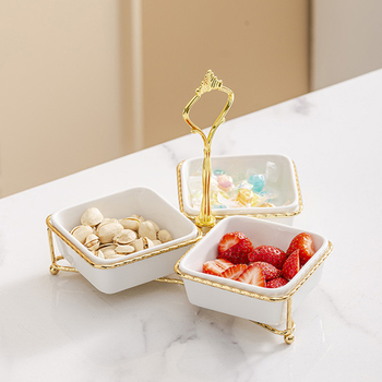 Бытовые металлические стеллажи, 3-слойный контейнер для еды, керамическая тарелка для салата, овощной торт, фрукты, орехи, закуски