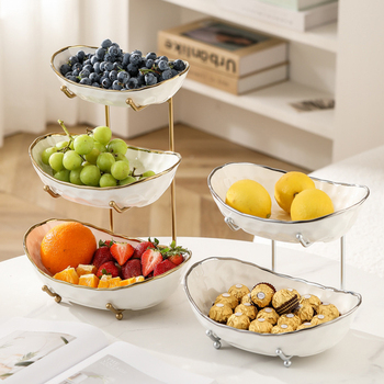 Yaratıcı lüks stil Metal seramik kek tatlı tabağı dekoratif porsiyon kaseler aperatif servis tabağı meyve sebze tepsisi