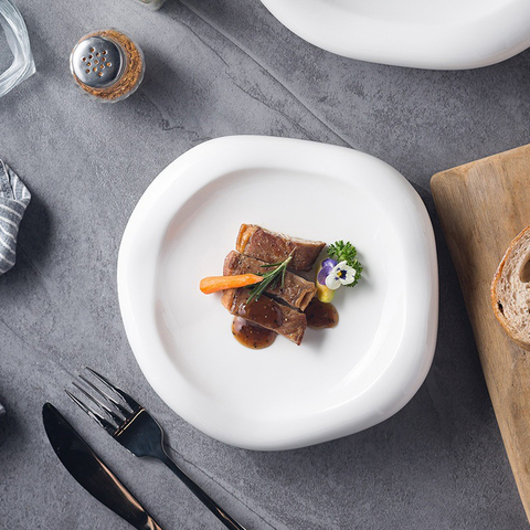 Yaratıcı düzensiz tasarlanmış porselen tabak parlak beyaz renk yemek tabaklar otel restoran ince yemek için yemek tabakları